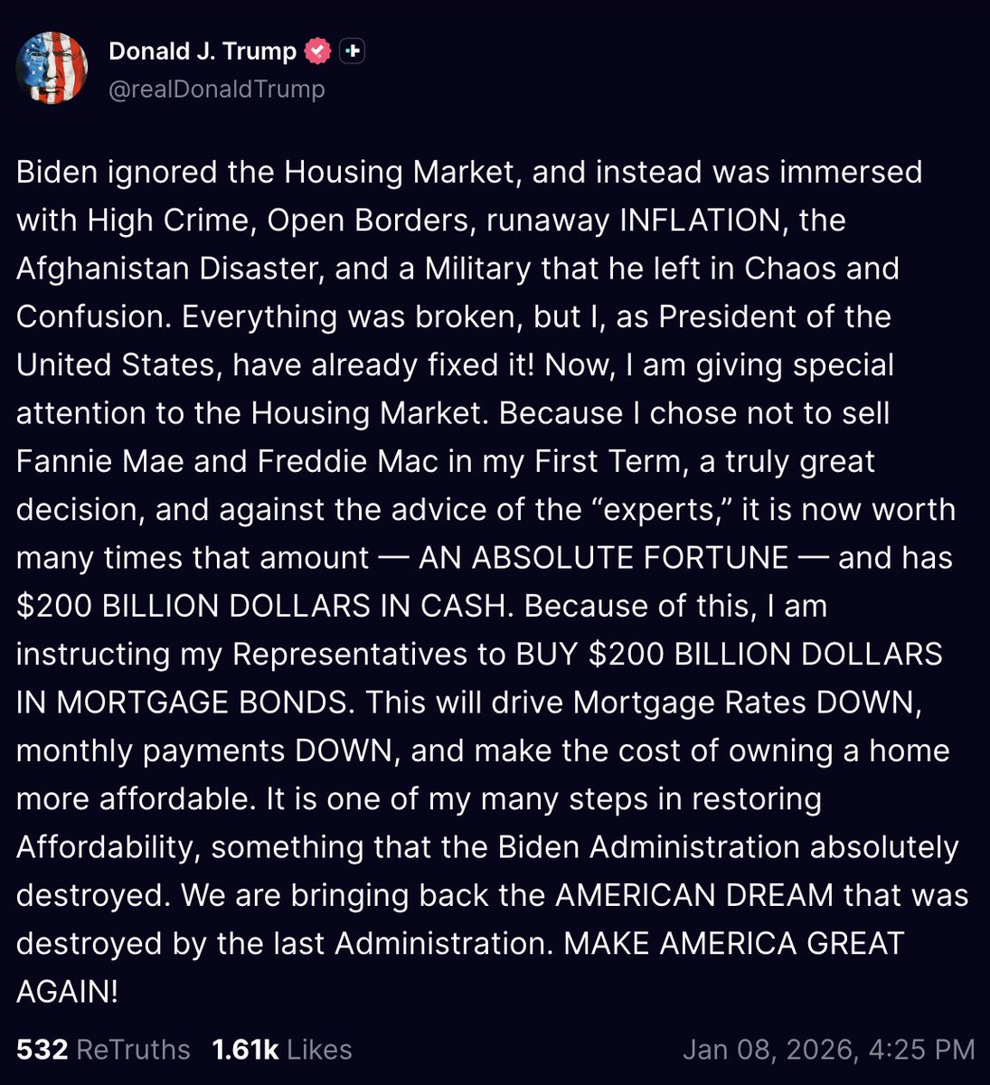 Injecting $200 billion into the housing market is not going to make anything cheaper, it's going to drive prices up. People are financially illiterate so they don't understand this and fall for deceptive rhetoric.