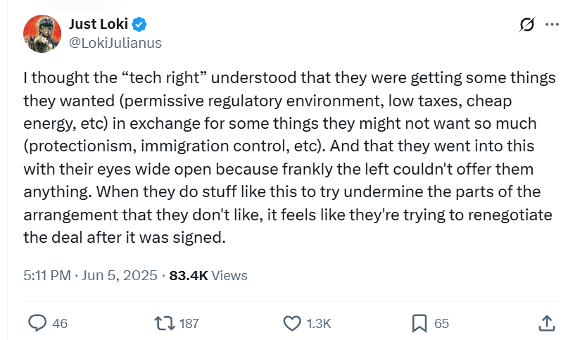 https://twitter.com/LokiJulianus/status/1988436351830704631I would prefer to not spend the next decade of my life dealing with economic depressions and a brutal civil war. But it seems to be the fate of Cassandra to understand the problem and not be in a position to personally solve it.