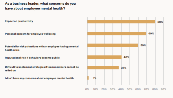 — 80% of CEOs believe that poor employee mental health negatively impacts productivity.