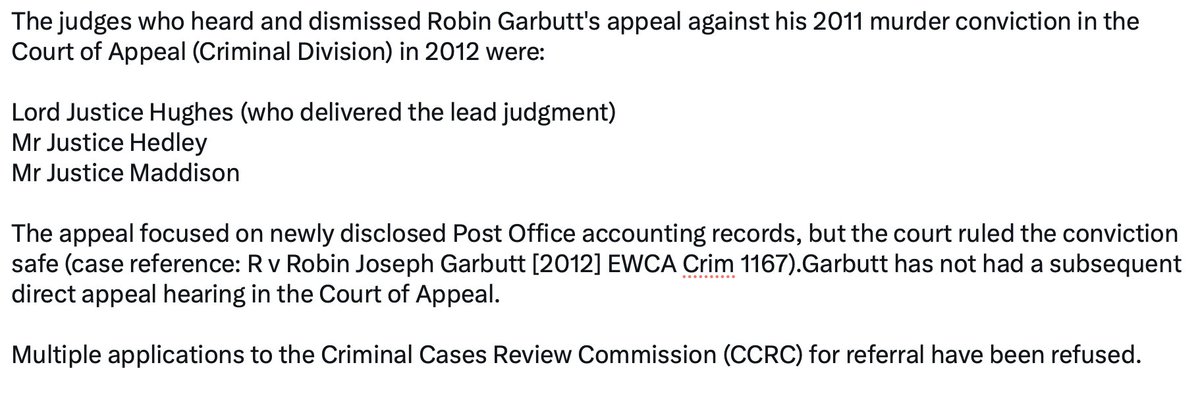 The jury, the judge and the Appeal Court rejected #RobinGarbett's ridiculous story that robbers murdered his wife Diana. The court of Appeal said the juries' verdict was clearly independent of the accounting records or any other financial evidence.