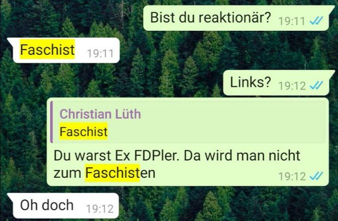Auf die Frage "Wie definierst du Faschist?" soll er ein Video des NS-Korvettenkapitäns Wolfgang Lüth geschickt haben & diesen als seinen Großvater ausgegeben haben, obwohl es sein Großonkel war.