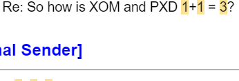 "How is XOM and PXD 1+1=3?" That's what appeared in my inbox.