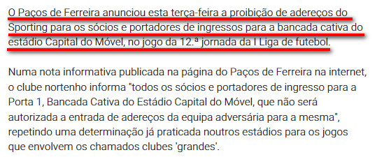 É sabido que há clubes que proíbem a entrada de adereços dos clubes visitantes MAS na bancada destinada aos seus sócios pq isso por razões óbvias tem implicações na segurança.👇👇