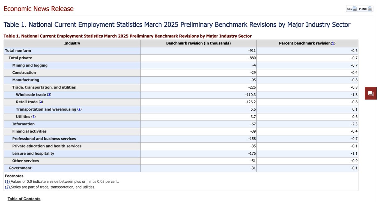 911,000 fewer jobs than previously estimated in the year from April 2024 to March 2025😲