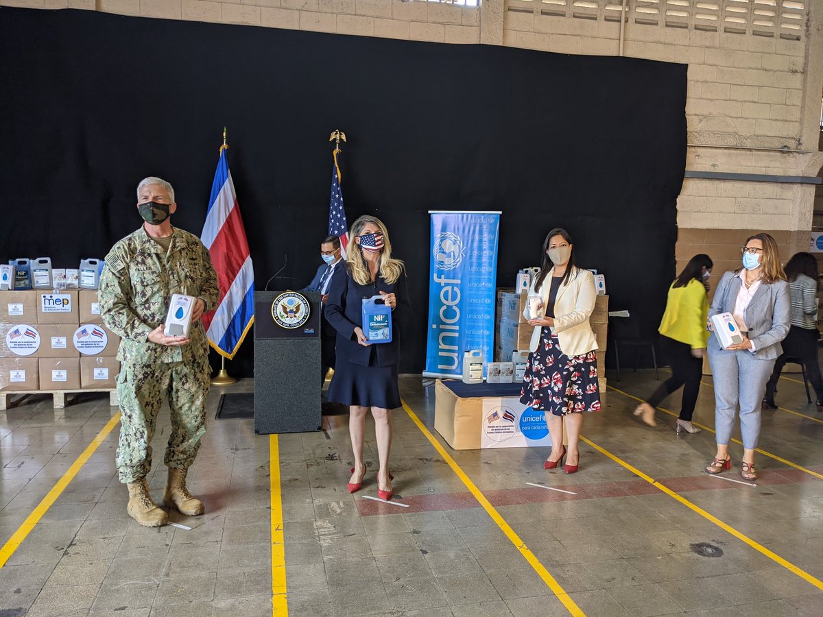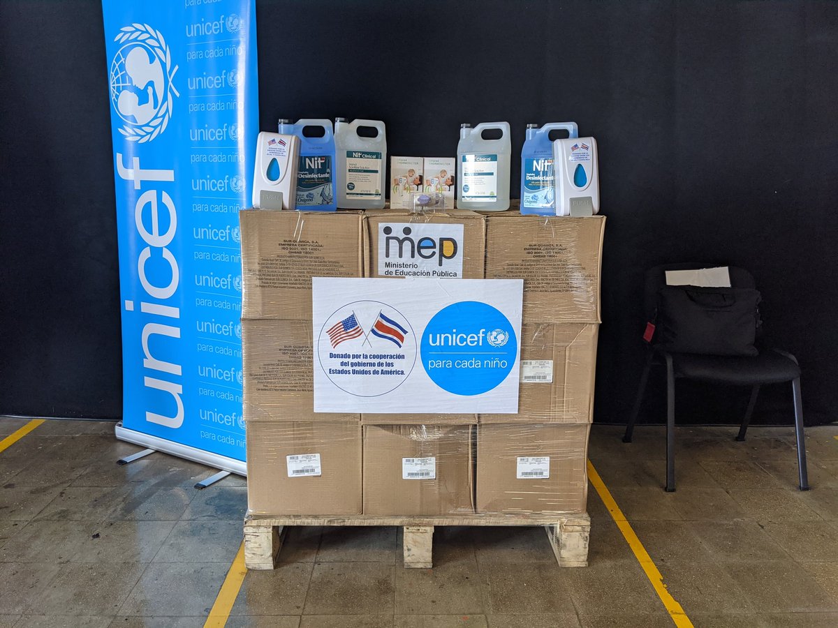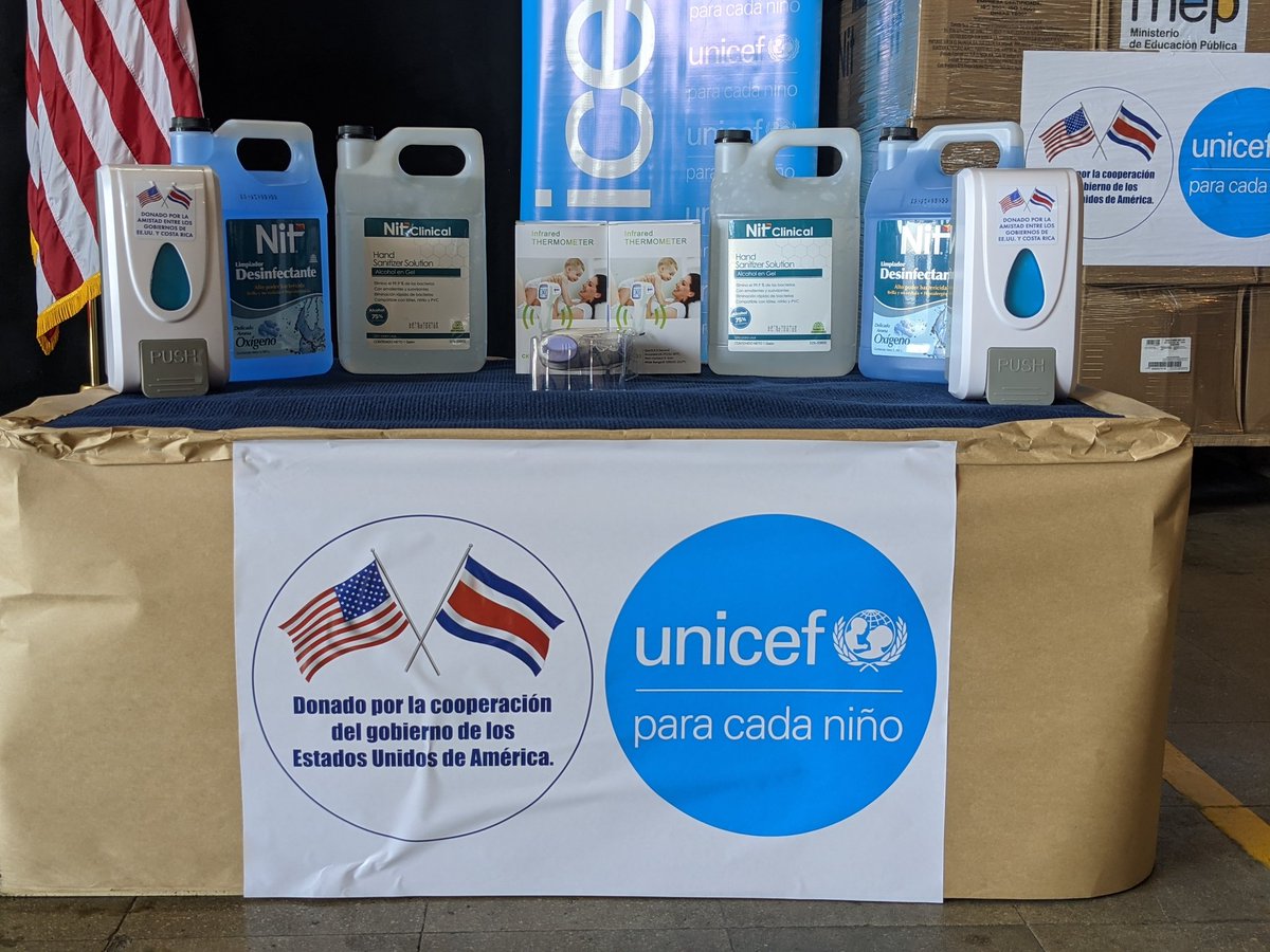 UNICEF en alianza con el gobierno de Estados Unidos por medio de la Embajada en Costa Rica, el Comando Sur y la Agencia Estadounidense para el Desarrollo Internacional (USAID), entregan al Ministerio de Educación Pública suministros higiénicos para el eventual regreso a clases.