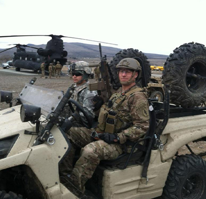 Plumlee and his driver charged straight into the battle. The driver maneuvered their vehicle to shield injured Soldiers while Plumlee instinctively protected his teammate from incoming rounds.