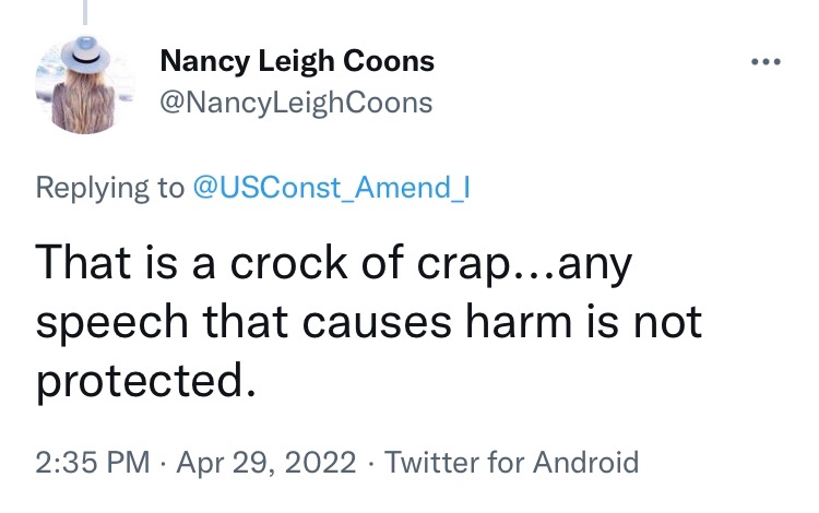 https://twitter.com/Middletownpress/status/1580291284362616832First, I apply to civil lawsuits and I limit the ability to successfully sue someone for their speech.