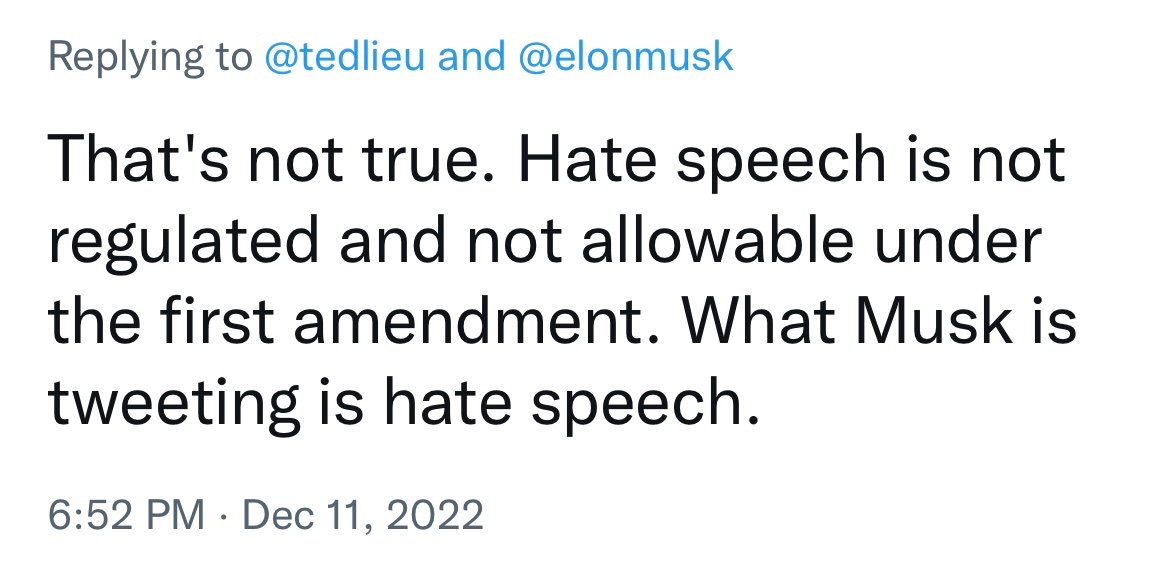 Some Supreme Court decisions involving hate speech:https://twitter.com/USConst_Amend_I/status/1365654201330671617?s=20&t=sScmh5rtADWyVDwLEe5eBg