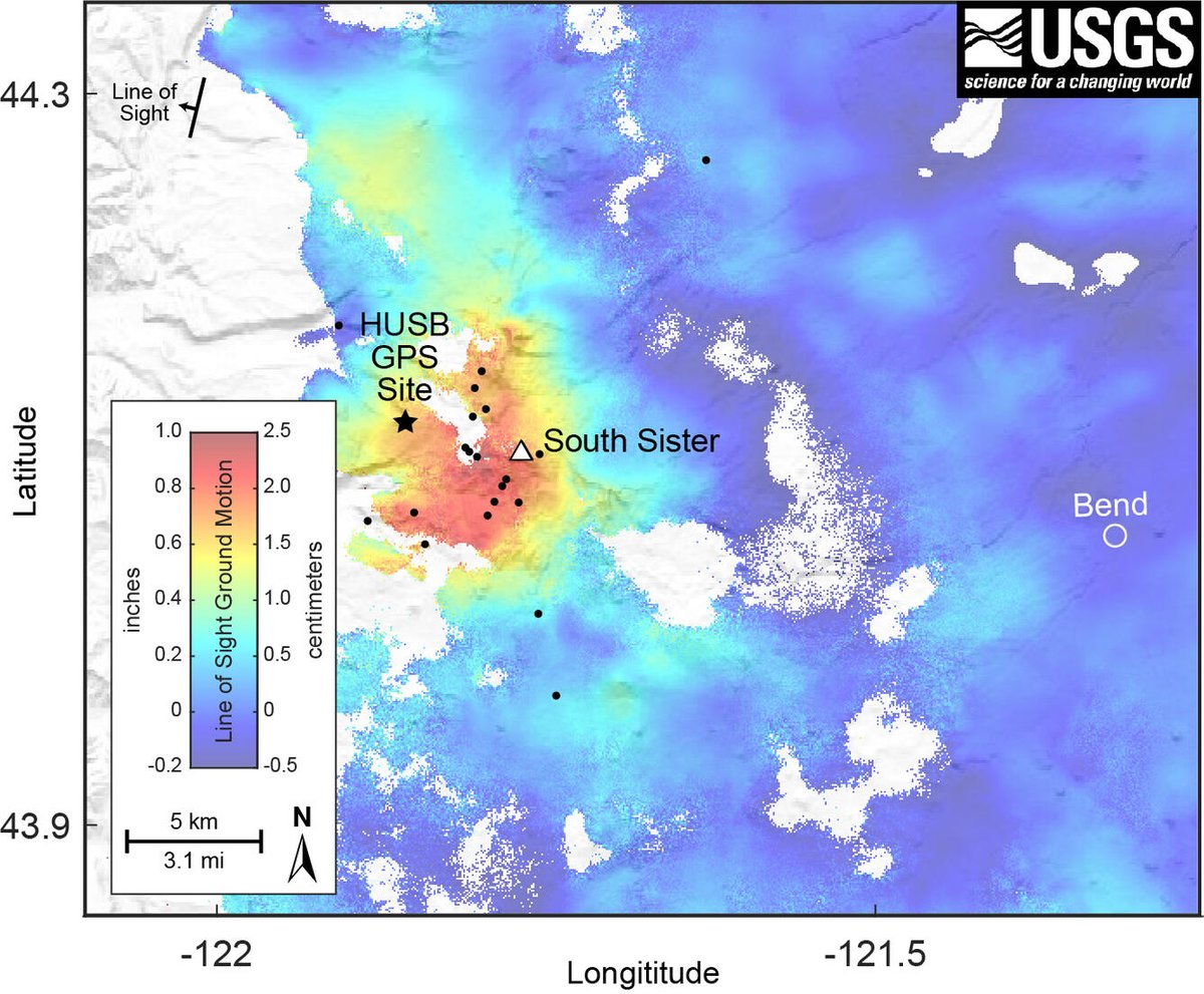 #CVO researchers detect subtle increase in the rate of uplift, 3 mi west of #SouthSister volcano, of #ThreeSisters in central Oregon. Episodes uplift observed in this area before. Volcano status unchanged.  1/6 volcanoes.usgs.gov/hans2/view/not…