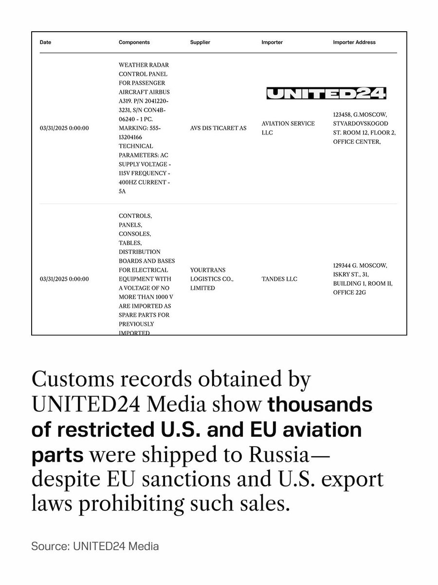 Russia’s aircraft still rely on Western parts, as customs records show restricted components from @Honeywell, @safran, and @ExxonMobil reaching Russia via intermediaries.