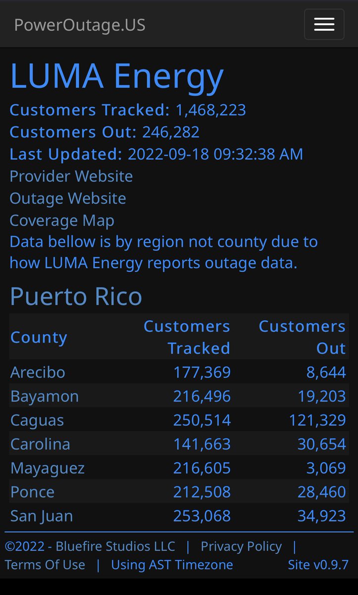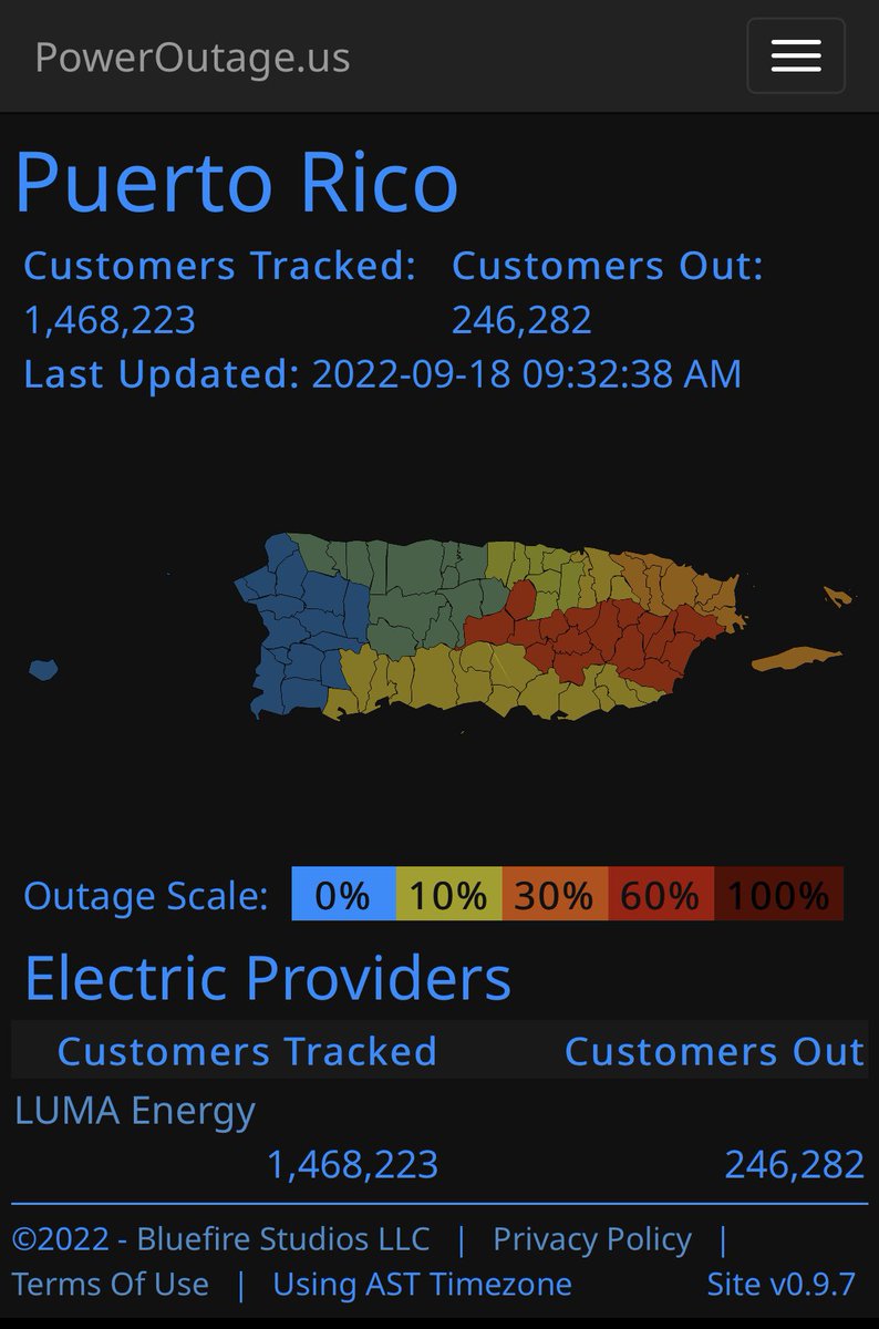 As of right now, there’s upwards of 240k customers without electricity across PR, totaling ~17% of the population. The actual number is likely higher than this though.