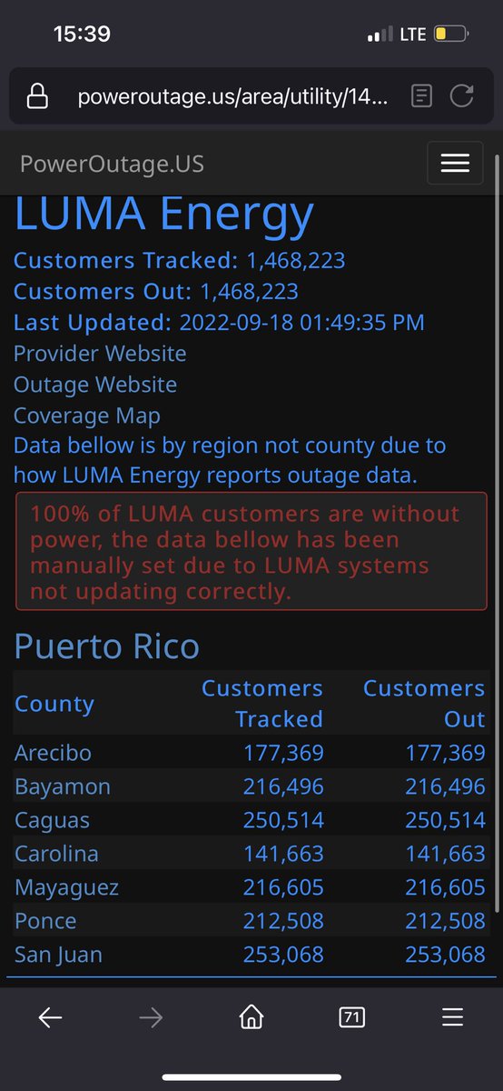 https://twitter.com/jaramilloutier/status/1573316335483949060He’s not the first mayor to express his frustration at the rate that LUMA has started bringing electricity to PR. Currently, about 1 million customers (out of ~1.4 million) don’t have power.