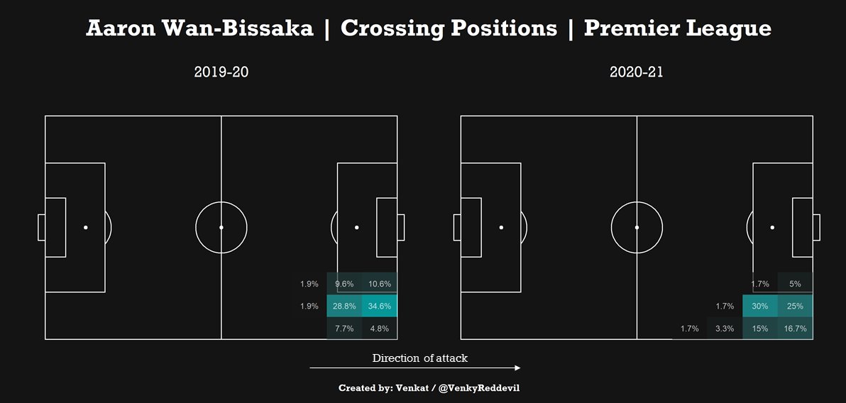 In this short thread, I use visualizations to determine if Wan-Bissaka improved during previous seasons and, if so, what areas. I will also examine what else he needs to develop during the coming season.