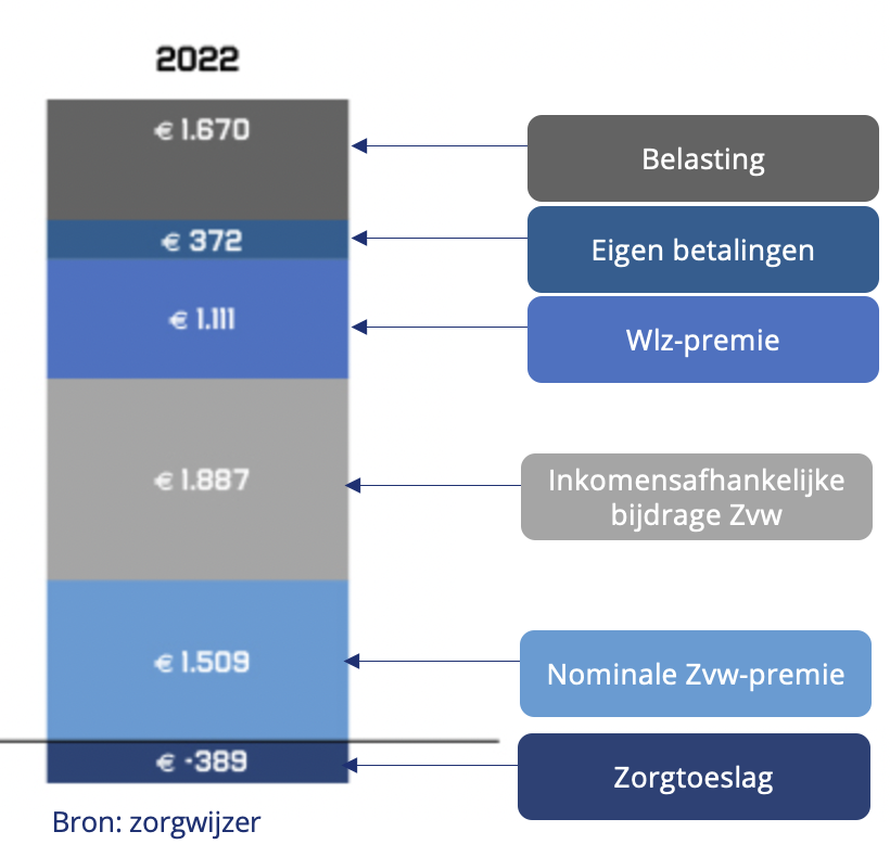 We gaven in 2022 per volwassene in Nederland gemiddeld €6.161,- aan zorg uit, of €513,- per maand.