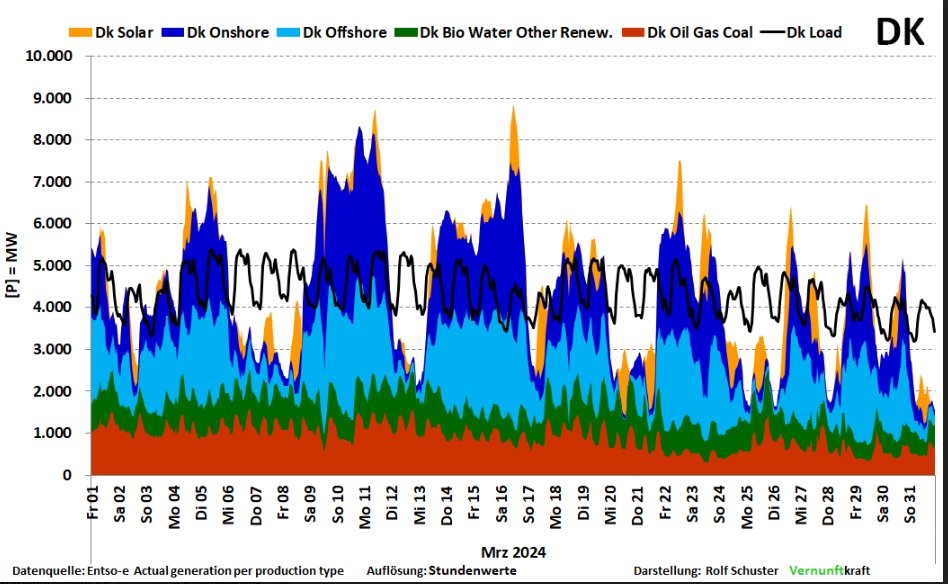 Unser Datenspezialist Rolf Schuster hat sich mal den Strommarkt unseres Nachbarn Dänemark im März 2024 angeschaut.