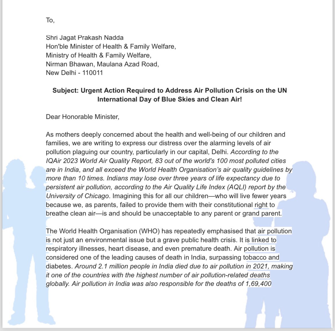 Push @CPCB_OFFICIAL to immediately update @WHO AQI standards & establishment of clear, enforceable targets/system to track annual avg PM2.5 levels for reducing pollutant levels nationwide.This has been delayed over 2 yrs & sadly, time loss is costing our children their health.