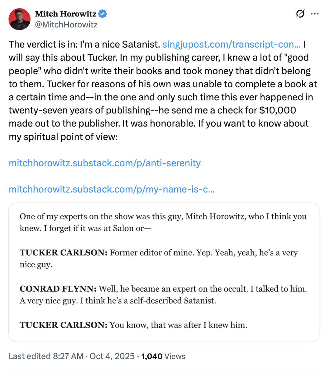 Horowitz pledged a paid subscription to Echols' Substack in June 2025, signaling personal investment in his friend's endeavors. Horowitz frequently promotes Echols' work on social media and his Substack, describing him as a "teacher" who embodies resilience and non-victimhood. In June 2025, Horowitz shared an Echols post with the comment, "A must-read," and in August 2025, he highlighted Echols' statement that "Comfort is the enemy of transformation."