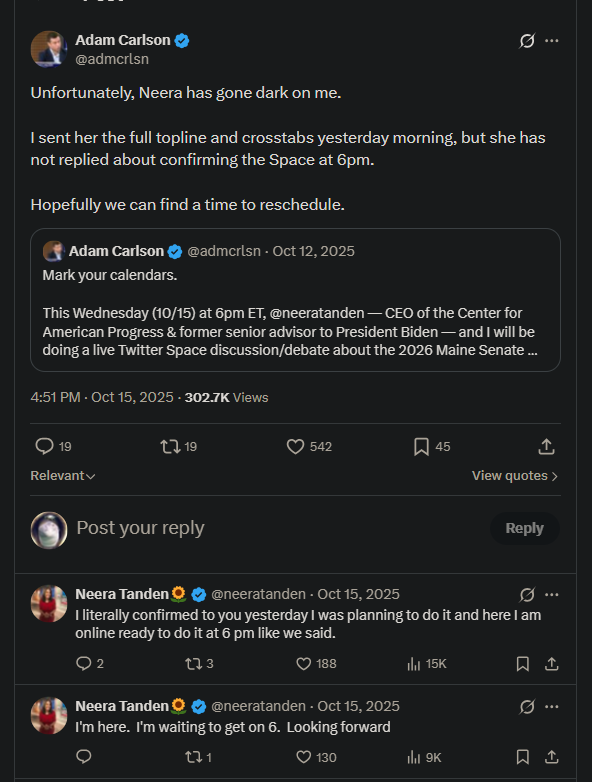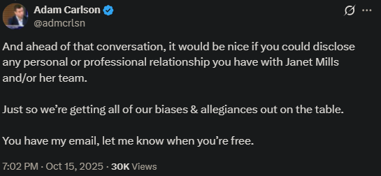 Oh and then he just demanded that she disclose her ties to the Janet Mills campaign. To get 'all of our biases & allegiances out on the table.'
