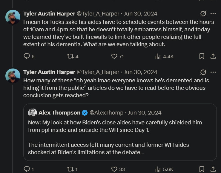 And man...I sure do feel like I got that right, because literally none of these guys even mention Trump's age/cognitive decline now. Even though they played a big part in making Biden's age the only story that mattered in the election where we got the oldest president elected who is ACTUALLY demented.