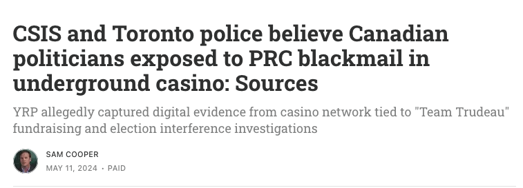 1. CSIS and Toronto Police believe Canadian politicians were exposed to a communist Chinese blackmail operation through an underground casino.