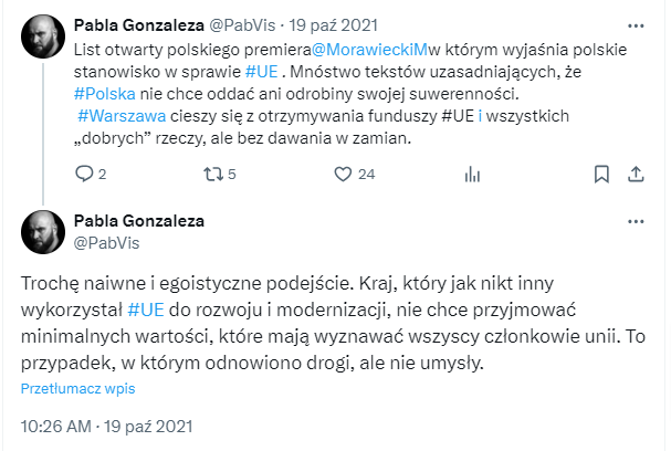 Tutaj z kolei w 2021 r. z pozycji typowych dla ówczesnej opozycji (nie oceniam - to fakt) ruga polski rząd @MorawieckiM za stanowisko suwerenistyczne.