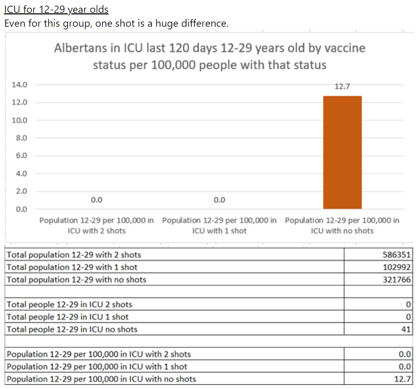 12-29 year olds in ICU by vaccine status over past 120 days in Alberta.