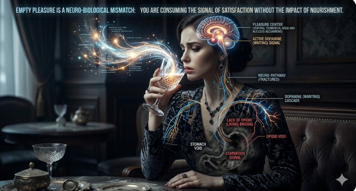 When you engage in a pleasurable act (eating, a cold shower, a walk, or tactile contact), the Amygdala and VTA (Ventral Tegmental Area) often rush ahead to the next hit. This leaves the current moment "empty."