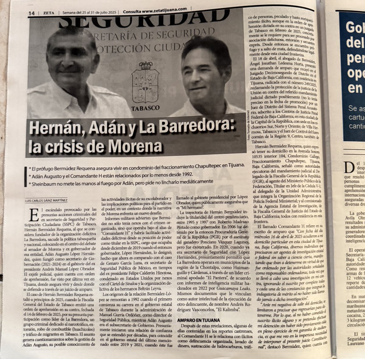 Esa persona insegura y con gran necesidad de valoración externa va a reaccionar. TODO EL TEMA DE ADÁN AUGUSTO Y SU RELACIÓN CON HERNÁN BERMÚDEZ Y LA BARREDORA DEL CJNG ES FUEGO AMIGO