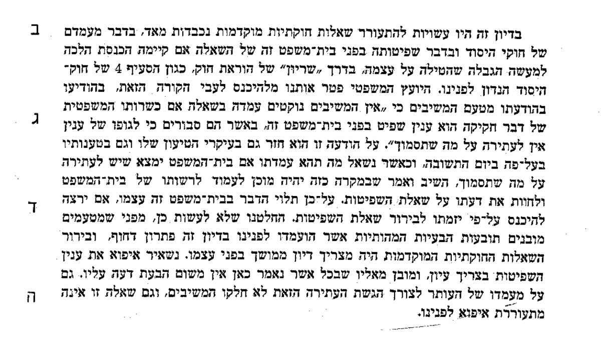 https://twitter.com/orcarmi/status/16349324467090309152/2 בג"ץ "עקף" את שאלת הסמכות לפסול חוקי כנסת, מכיוון שהמדינה, שיוצגה ע"י שמגר, בפירוש לא ביקשה לטעון לחוסר סמכות.