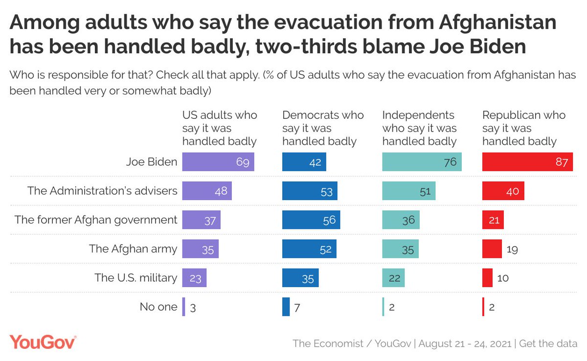 69% of US adults who say the evacuation from Afghanistan has been handled badly blame President Joe Biden.