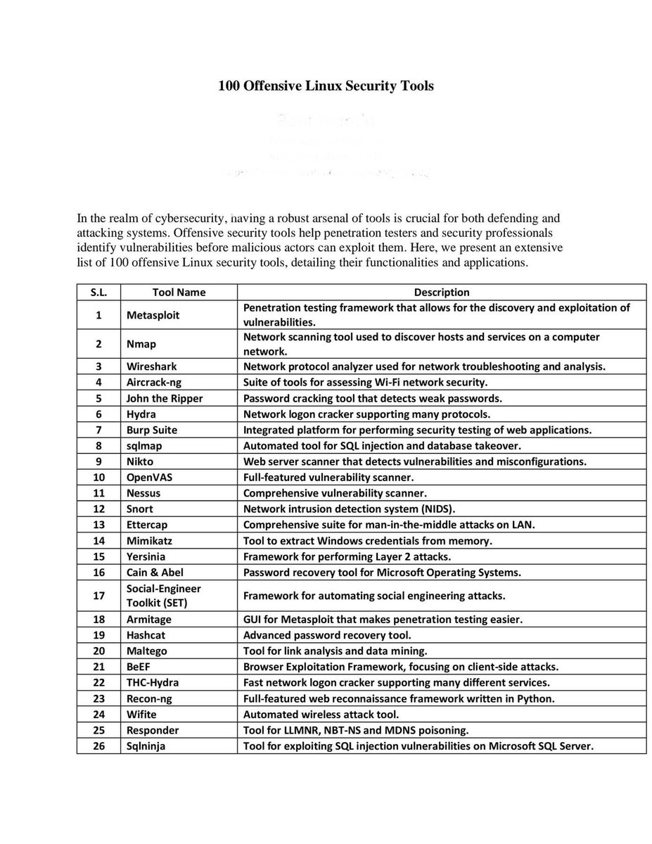 π§ 100 Offensive Linux Security Tools For Awareness & Research (Authorized Use Only) βοΈ