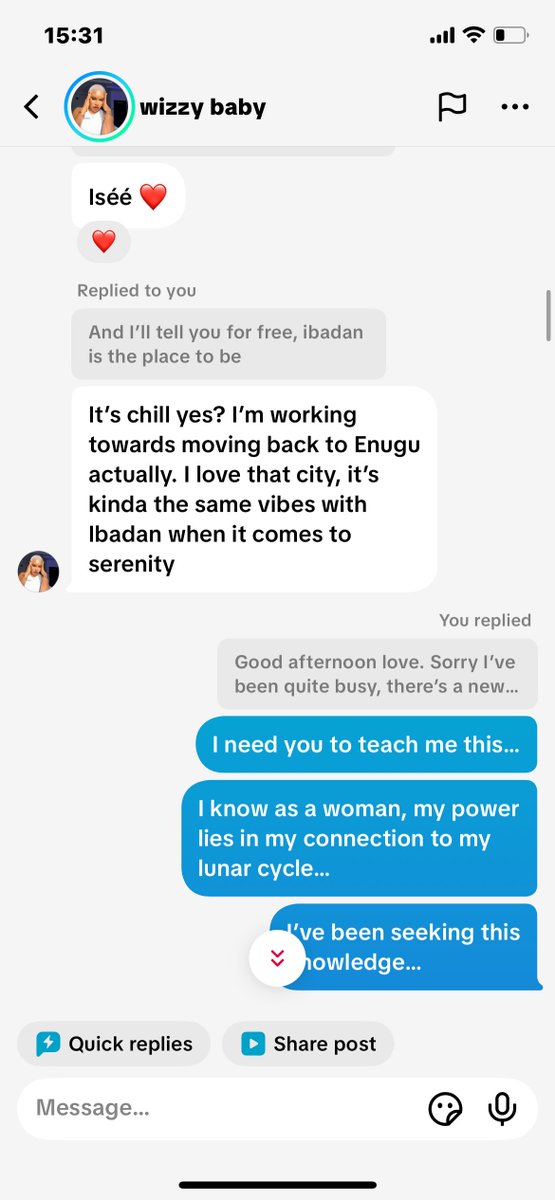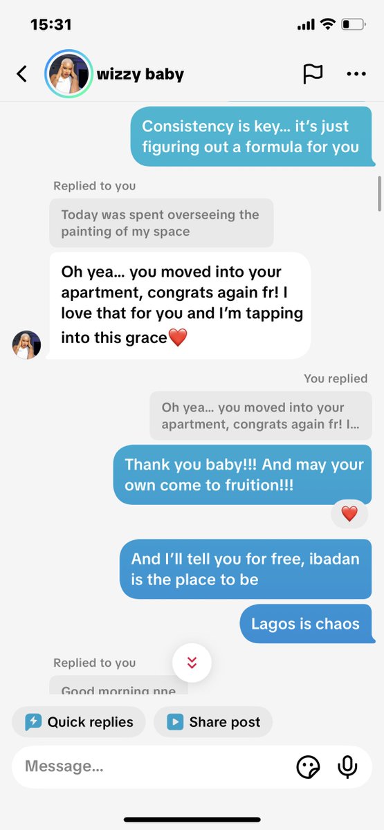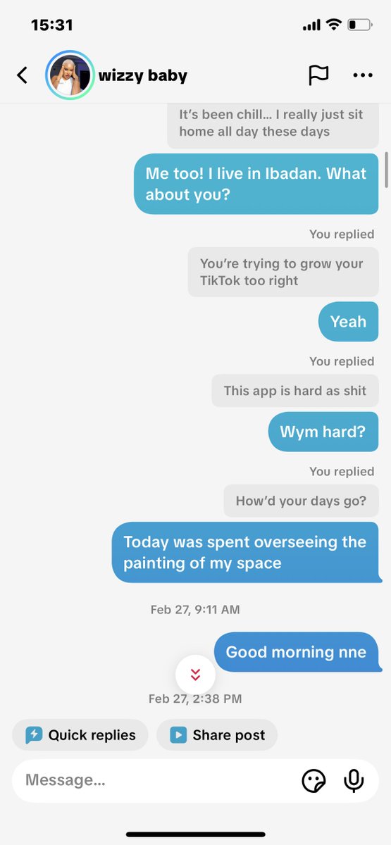 I am putting this out, because Chigozirim Wisdom Edward’s will be the last person to do this to my name. These is every single text that was passed between the both of us, leading up to the one week she spent in my house, which was filled with bitterness, sorrow and strife.