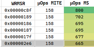 Turns out you can also find out undocumented MSRs behind NDA with Haruspex, looks like either rdmsr/wrmsr dispatches μOps dynamically or the decoder waits for the ecx value to be set, pretty interesting.🤭