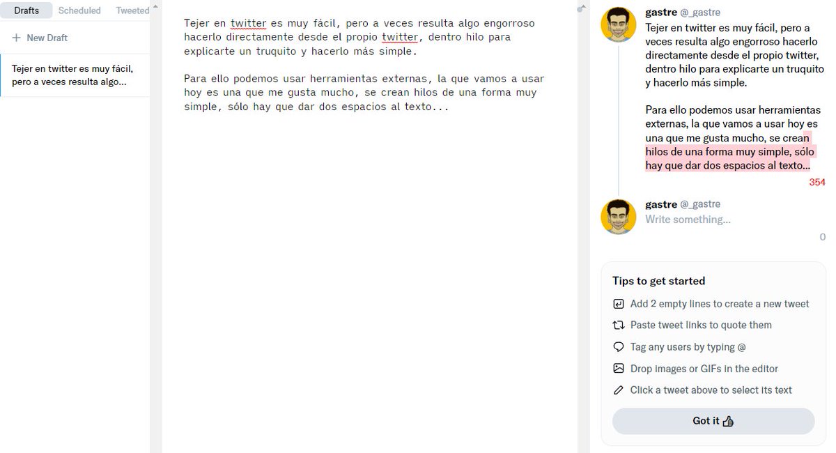 Tejer en twitter es muy fácil, pero a veces resulta algo engorroso hacerlo directamente desde el propio twitter, dentro hilo para explicarte un truquito y hacerlo más simple.