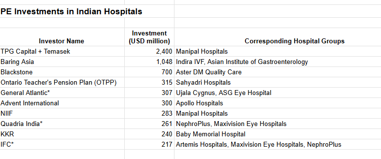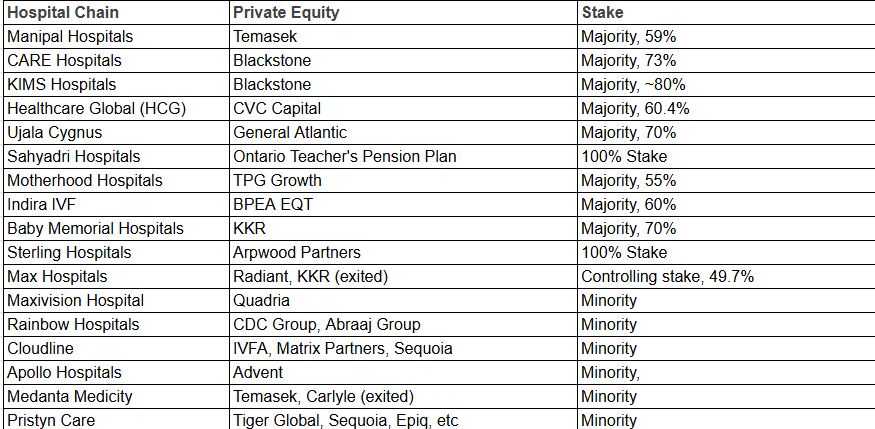 Private Equity firms own a large stake in each of them. Infact, PE firms now own majority stake in some of India's largest hospital chains!