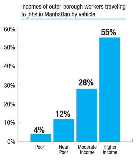 It also misses the fact that the vast vast majority of people don’t drive into Manhattan and those who do look like this:
