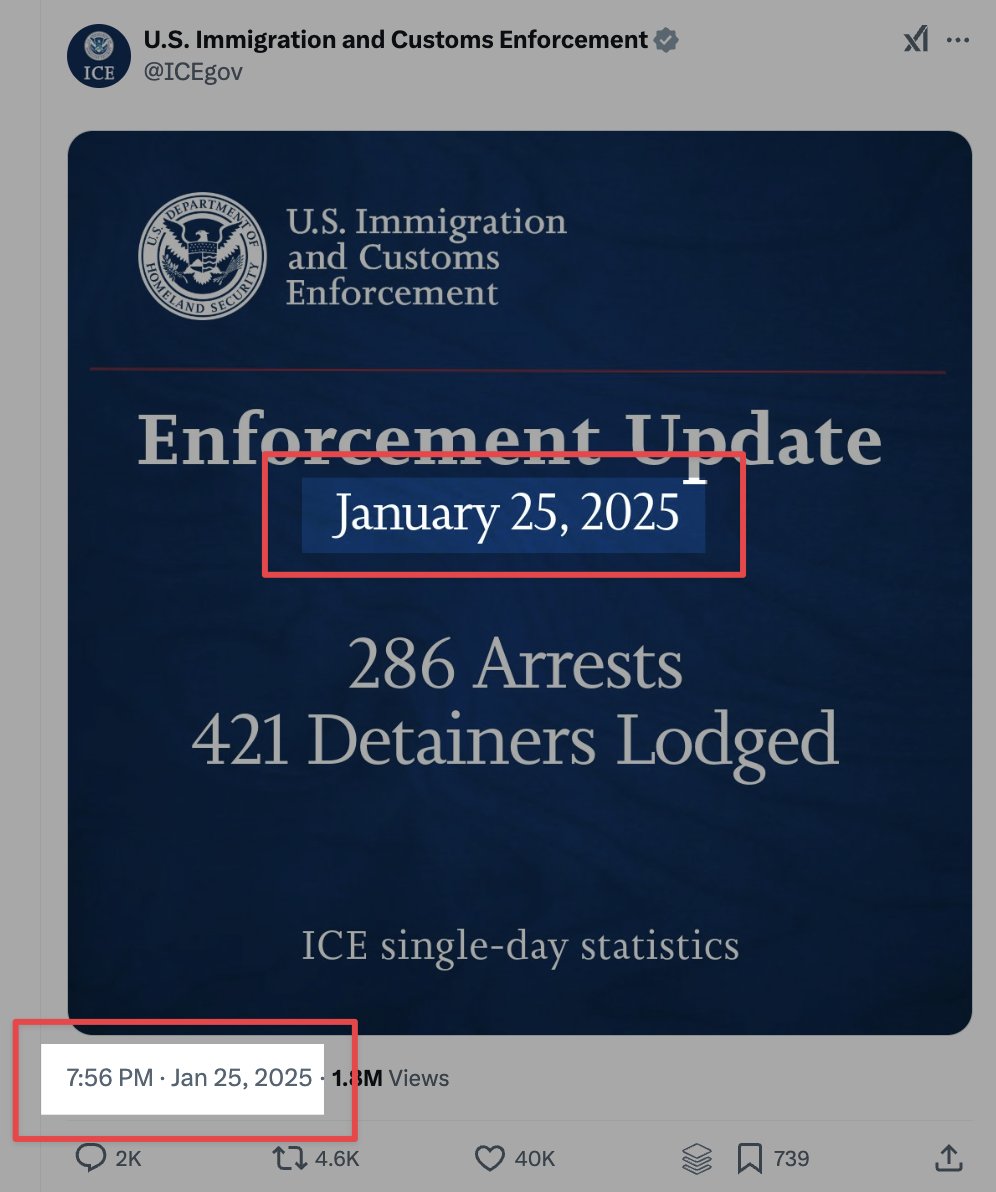 https://twitter.com/icegov/status/1883317983914656217First, ice uses multiple data systems to manage its enforcement data, including a massive comprehensive warehouse of transactional data records and other cleaned up and summarized data systems that feed into pre-produced reports.