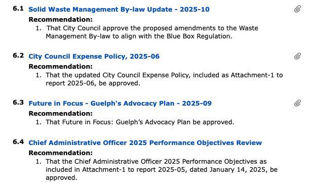 Coming up at 6 pm, it's this month's regular meeting of council. This what's on the agenda: guelphpolitico.ca/2025/02/14/cit…