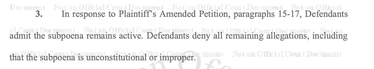 https://twitter.com/adamsteinbaugh/status/1927741616724304100The city is still insisting the subpoena -- requiring that a guy appear at city hall to defend his online remark that police should search the now-arrested mayor's basement for a missing youth -- remains active: