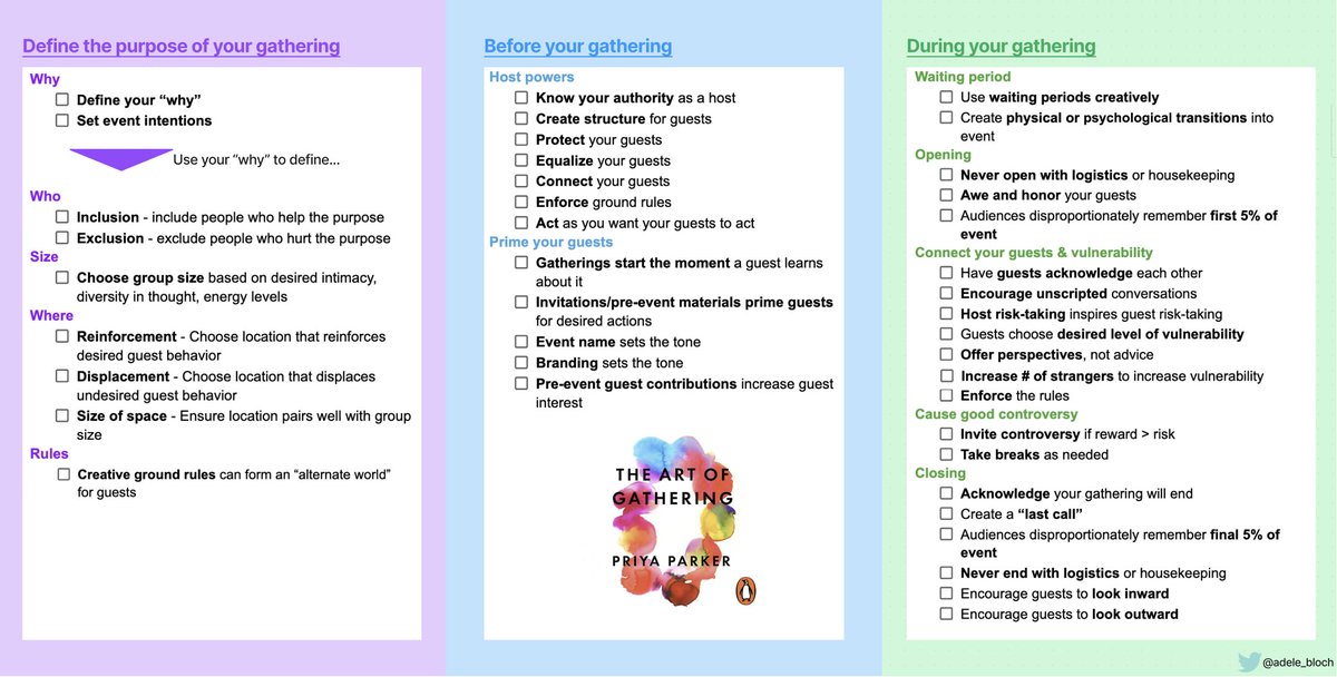 Priya Parker’s best-seller, The Art of Gathering, compiles years of research on effective gatherings.