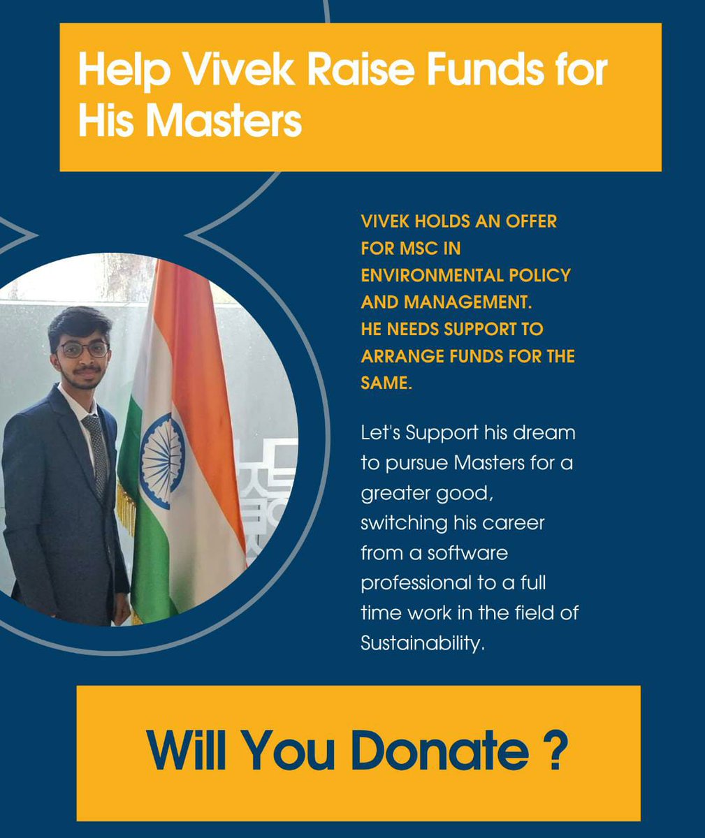 My Friend @vcgurav needs your support to raise funds for his higher Education. Vivek has actively been working on environment issues. Now, he is looking forward to do his Masters in "Environment Policy" at University of Bristol, UK.