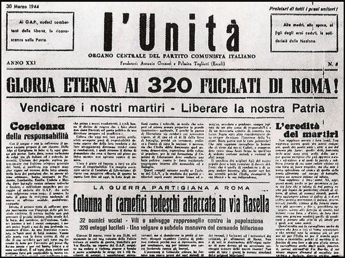 1) Un dia com avui del 1944 les tropes nazis van perpetrar una gran matança a Roma, la de les Fosse Ardeatine, assassinant 335 italians de totes les edats. El capità de les SS que va encarregar-se dels afusellaments va ser Erich Priebke, que va morir tranquil a Roma als 100 anys. 2) El 23 de març de 1944 mitja Itàlia estava sota ocupació nazi. Una brigada partisana va posar una bomba i van morir 33 soldats hitlerians. El Führer, com a escarment, va ordenar matar 10 italians per cada alemany mort. Priebke va decidir afegir-ne cinc més de propina. Així era.