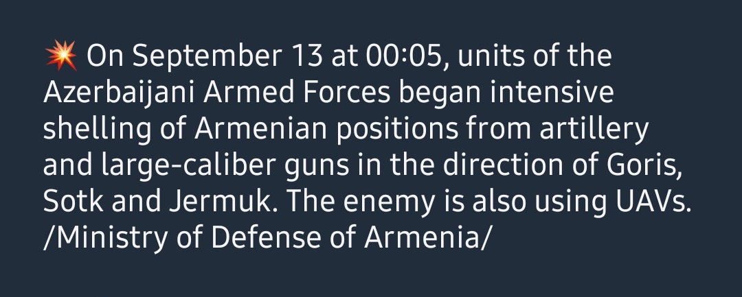 https://twitter.com/tinso_ww/status/1569426815323709441Armenia and Azerbaijan are at it again, military unit in Kapan has been reportedly struck from drone.