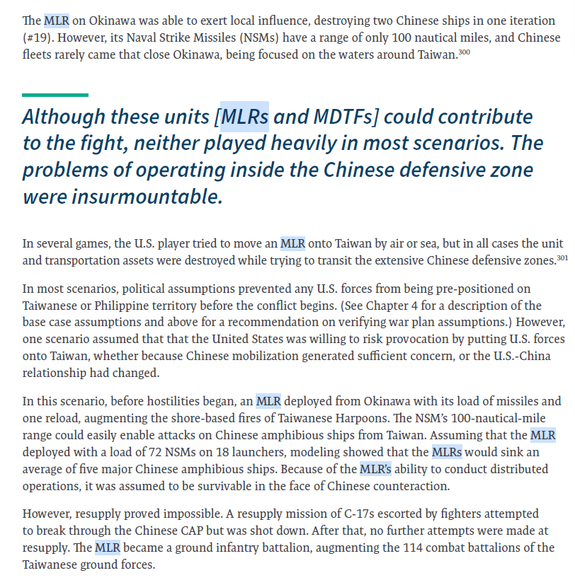 En mi opiniĂłn el verdadero valor de los MLR del USMC es poder crear bases avanzadas (EABO) que permitan operaciones austeras tanto a los cazas navales como a la USAF. Poder repostar y rearmarse cerca de la zona de operaciones es fundamental para no depender de grandes bases.
