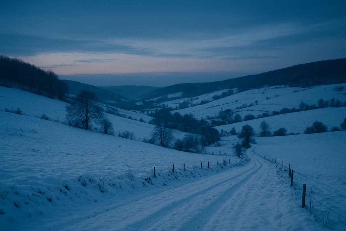 « Ce matin, nous avons dû errer dans un paysage de glace et de neige ; le froid piquait les oreilles, le menton; le jour se levait à peine… À cinq heures, la nuit est si belle sur la terre aux reflets de neige. 2/4
