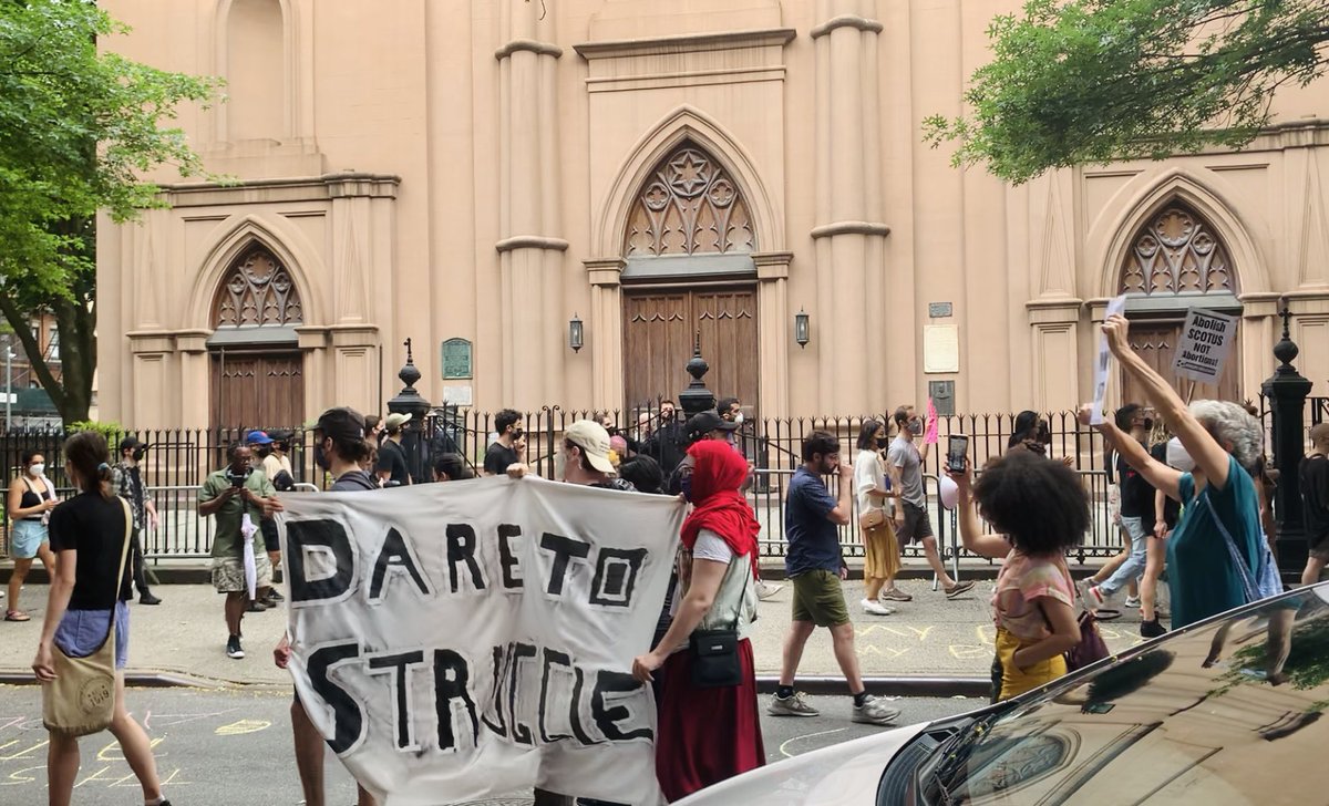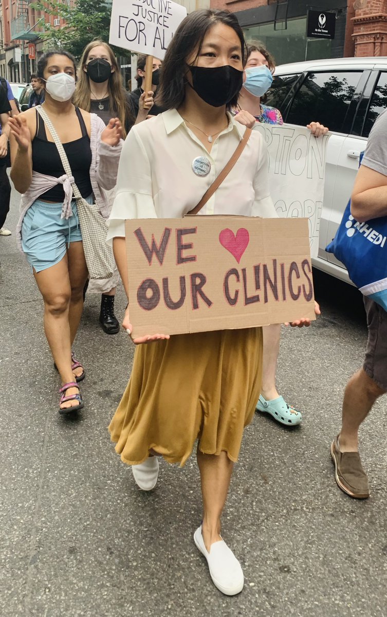 Hundreds of people carried signs and chanted on the sidewalk and the street, preparing to use their bodies to prevent the anti-choice extremists from reaching the clinic.