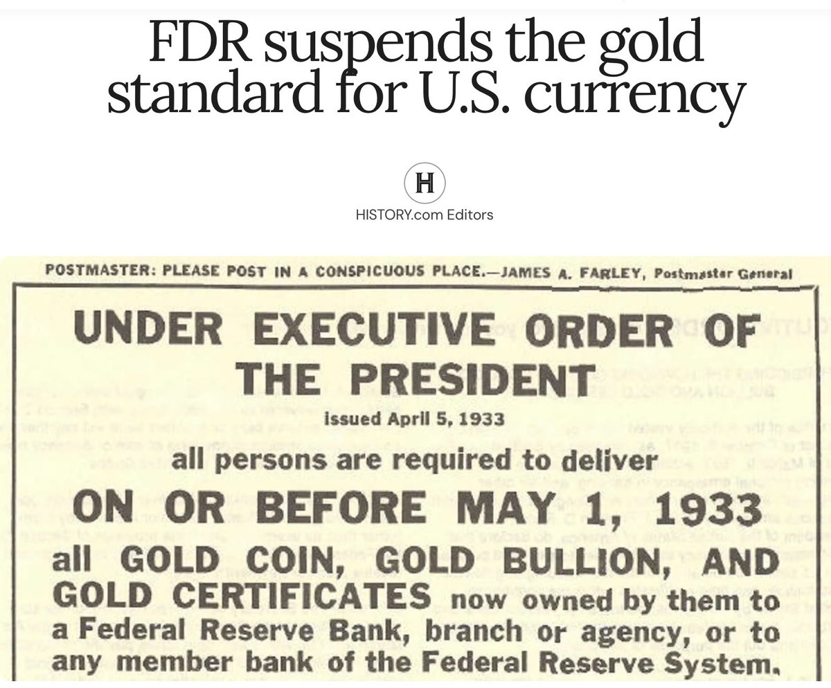 - 1930s Gold Fraud: Roosevelt’s 1933 order banned gold ownership, forcing sales at $20.67 per ounce, devaluing the dollar to swindle Depression-era creditors.