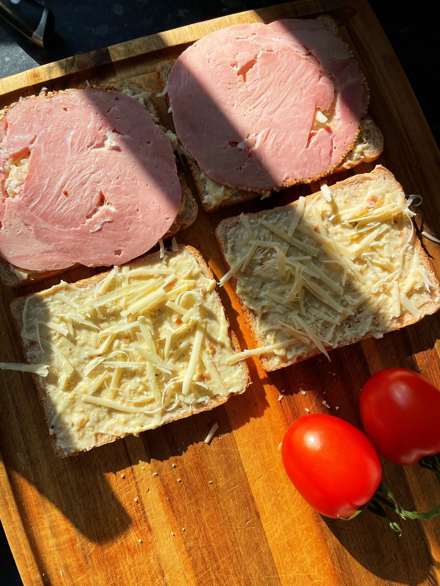 Just like the regular family members, a croque takes regular white sandwich bread and slathers it with bèchamel sauce, gruyère cheese and ham. Some add the cheese into the sauce to make a Mornay sauce, but I like distinct layers of cheese and milky bèch sauce.