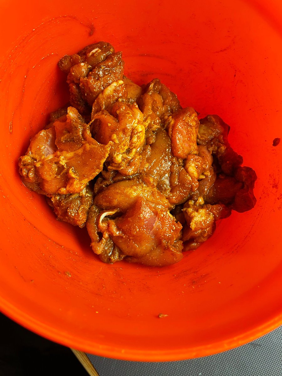 First. The chicken. I’m using boneless thighs. I’ve coated 4 of them in 2 tablespoons of cheap, shitty yellow curry powder (the cheaper the better), 1 tablespoon of fish sauce, 1 tablespoon of sugar and a tablespoon of chicken powder. You can use a crushed chicken stock cube, or the seasoning packet from chicken instant noodles. This is essential for Cà Ri Gà hard-hitting comforting taste. I use a restaurant-grade powdered stock which I use around work and I buy for myself at home. I’ll tell you all about it some other time. Mix together - we’re not marinating here, simply binding the spices and seasonings to the meat and its fat.