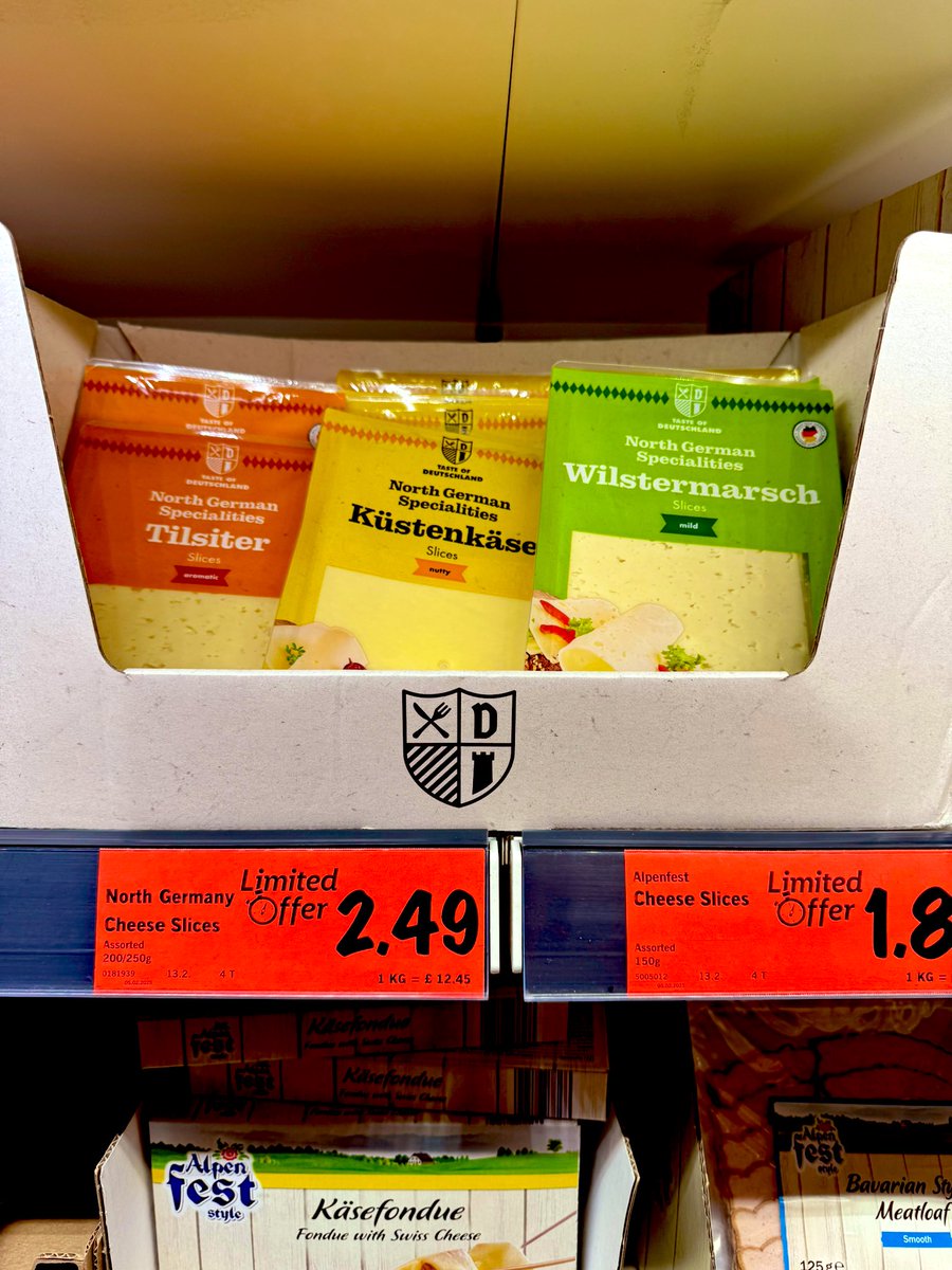 The regional cheeses return. You may remember I did a feature on these least year. Let me break them down for you. Tilsit originally comes from Prussia and is made with an emmental method, but the local bacteria gives a different flavour. Steely and cool. Like winter frost on your tongue. The küstenkäse is a coastal cheese, a Nordic style that’s matured on spruce wood. Very creamy and nice with fruit (apples, pears, quince). I’d be delicious with a fruit cheese. In a sandwich with a spiced apple chutney - to die for. Or with apple strudel. The Wilstermarschkäse is a fun cheese. Full of little holes and very mild - a ‘snacking cheese’. Perfect for breakfast or sandwiches. Not so great for trypophobia. These are very similar to butterkäse cheeses, also extremely popular in Wisconsin through German immigrants. Great, melty cheeses perfect for cheeseburgers and mac & cheese. I mean they’re all perfect for rye bread too. 🇩🇪